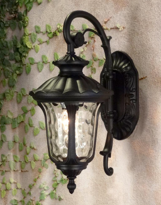 That's the best way to describe the Chateau Top Mount Light Fixture. From the precise detail in the large scroll arm and the oversized backplate, to the beautiful baroque one piece glass globe, the Chateau offers elegance and value in one complete package. Made of cast aluminum with a durable black powder coated finish.