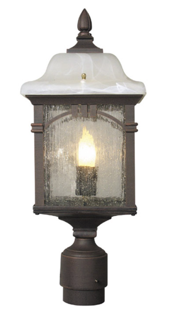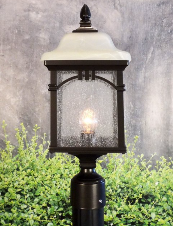 These outdoor light fixtures are virtually maintenance free, manufactured with cast aluminum cage, finial, and post fitter, as well as brass and stainless-steel components.